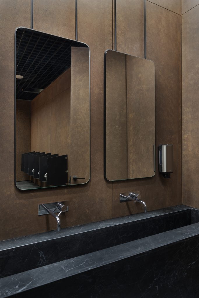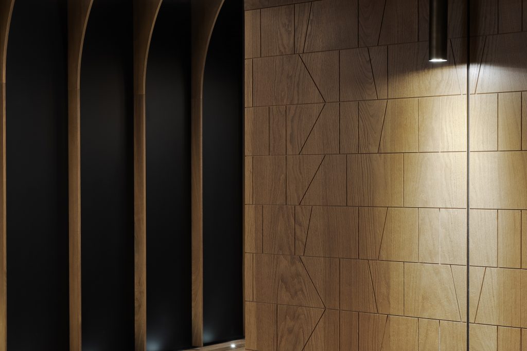 Acoustic control is carefully considered. Sound-absorbing panels maintain clarity and comfort, particularly in VIP areas. Chrome and oxidized metal finishes are used selectively to punctuate the space without dominating it.